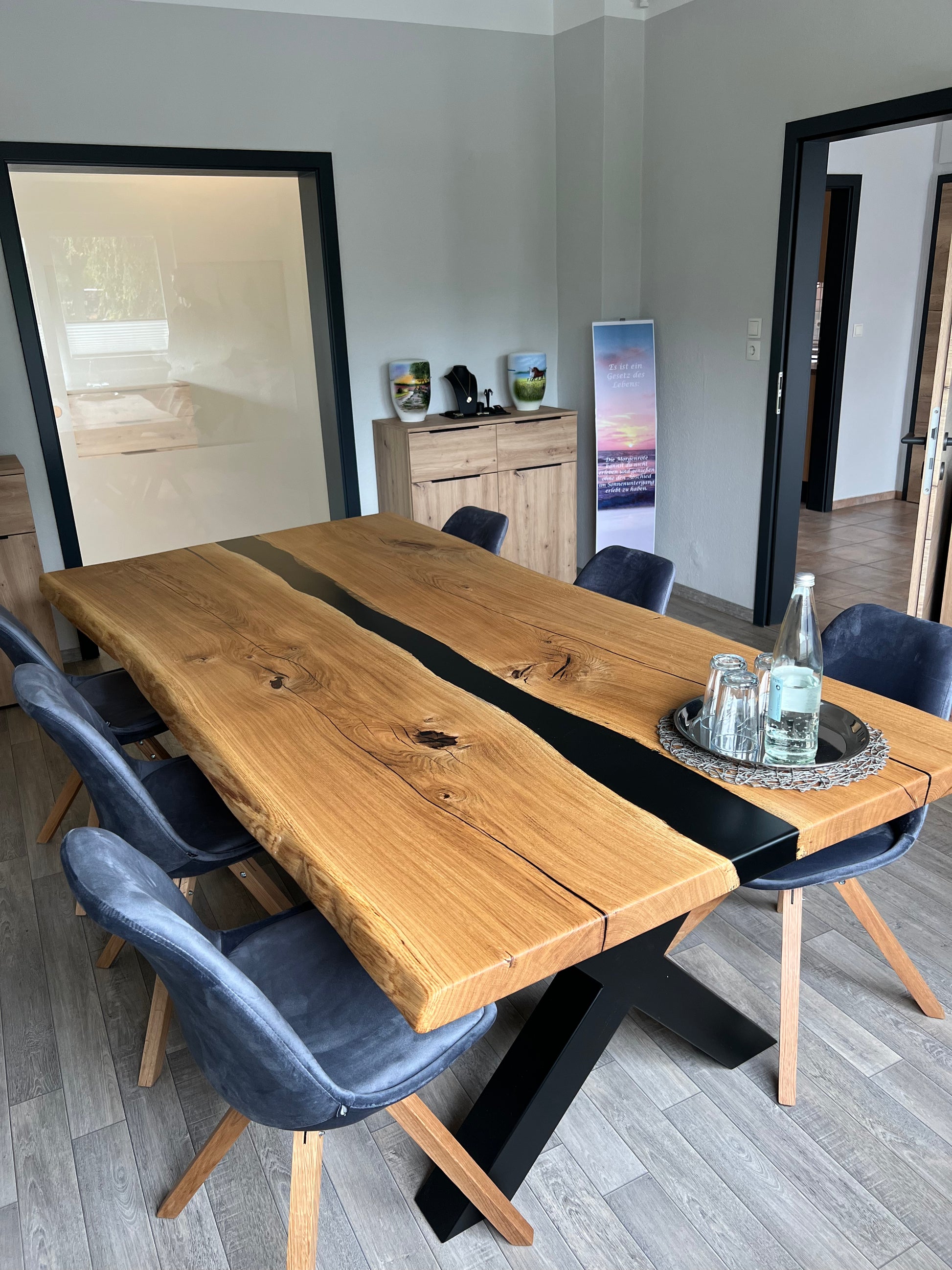 Tischplatte Eiche Epoxidharz Naturbaumkanten 220cm
