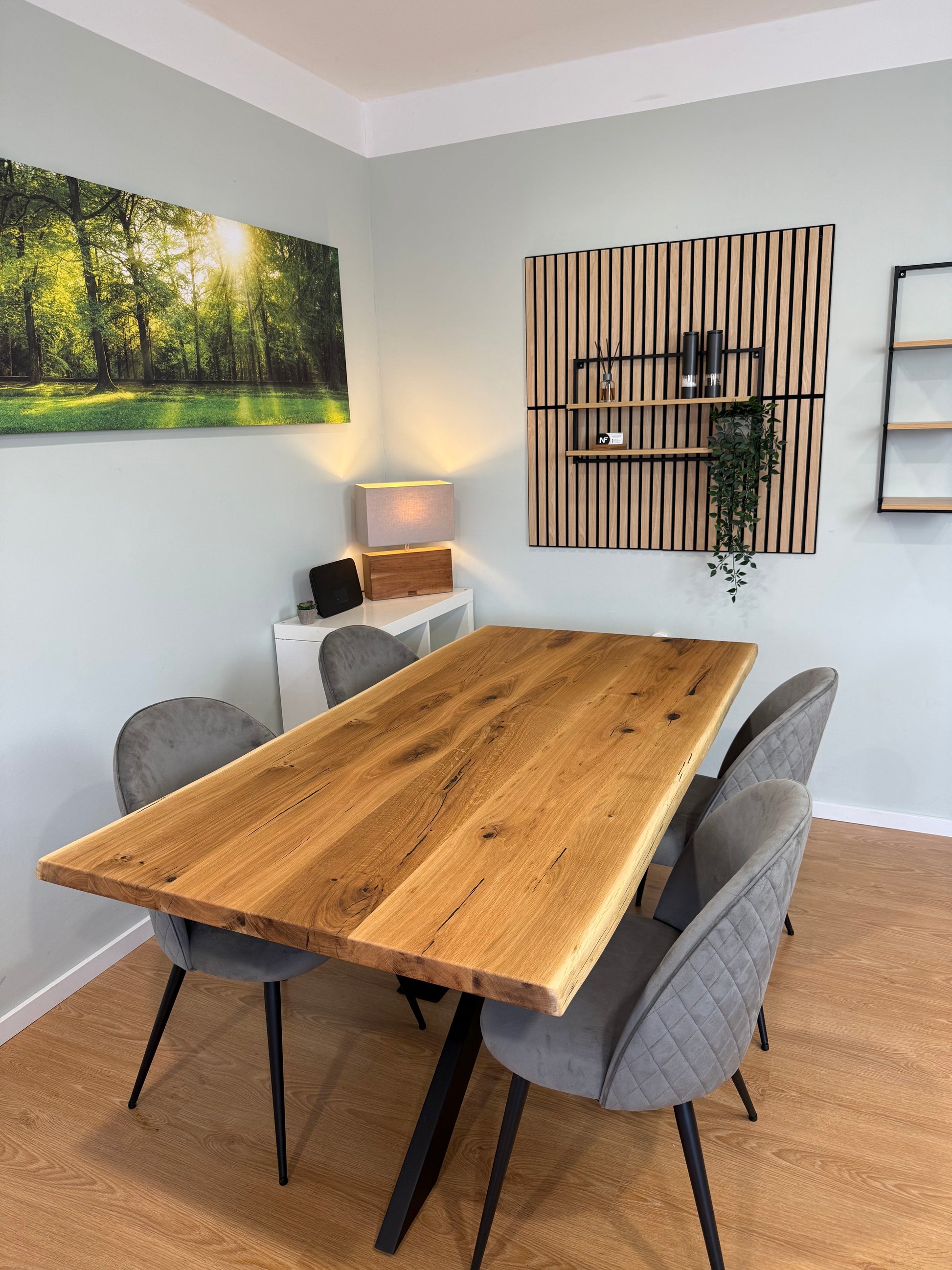 Jeder Tisch entsteht aus ausgewähltem Holz mit echtem Charakter. Keine Serienfertigung. Genau deshalb gleicht kein Tisch dem anderen.