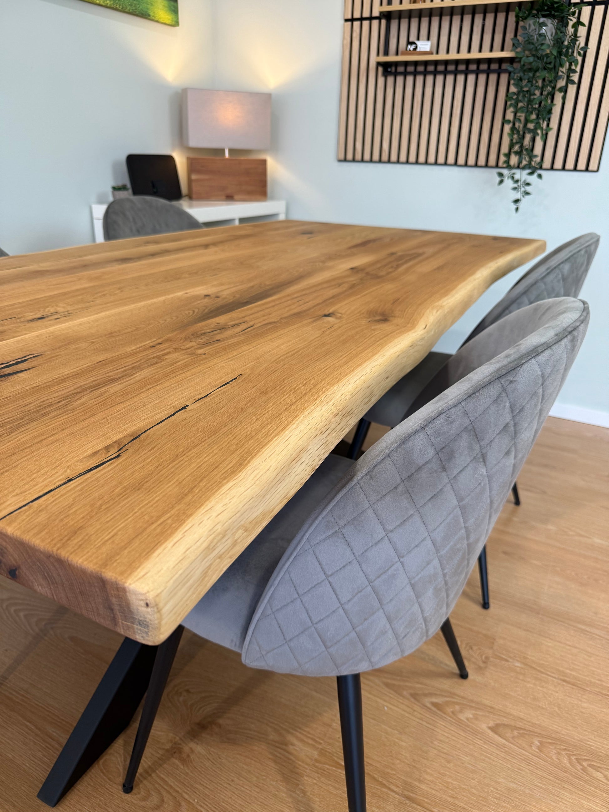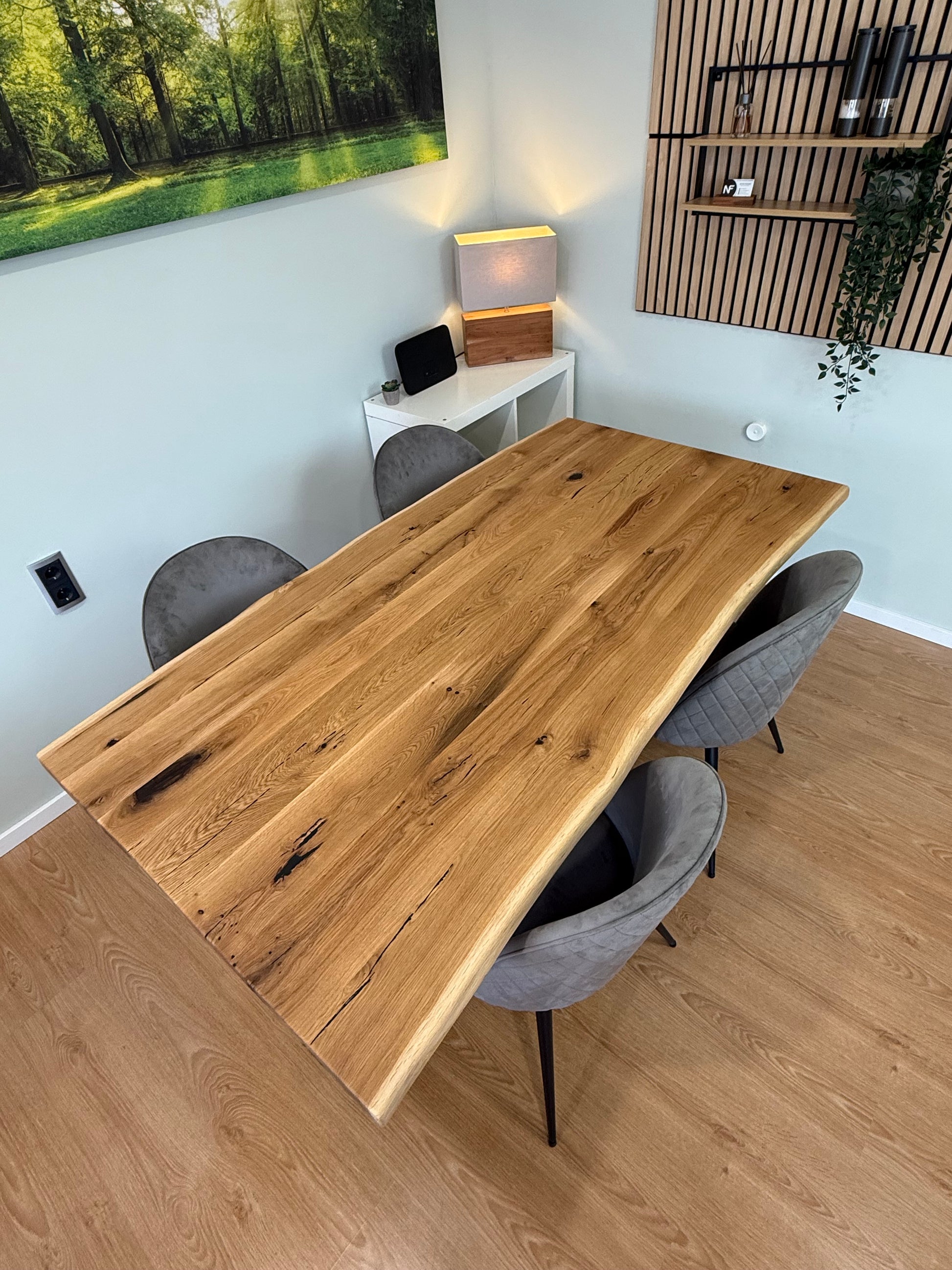 Dieser Tisch ist mehr als ein Möbelstück. Er ist ein Statement für Natürlichkeit, Qualität und ehrliches Handwerk. Die markante Maserung des Holzes, die gewachsene Baumkante und die natürliche Form machen ihn zum Mittelpunkt des Raumes.